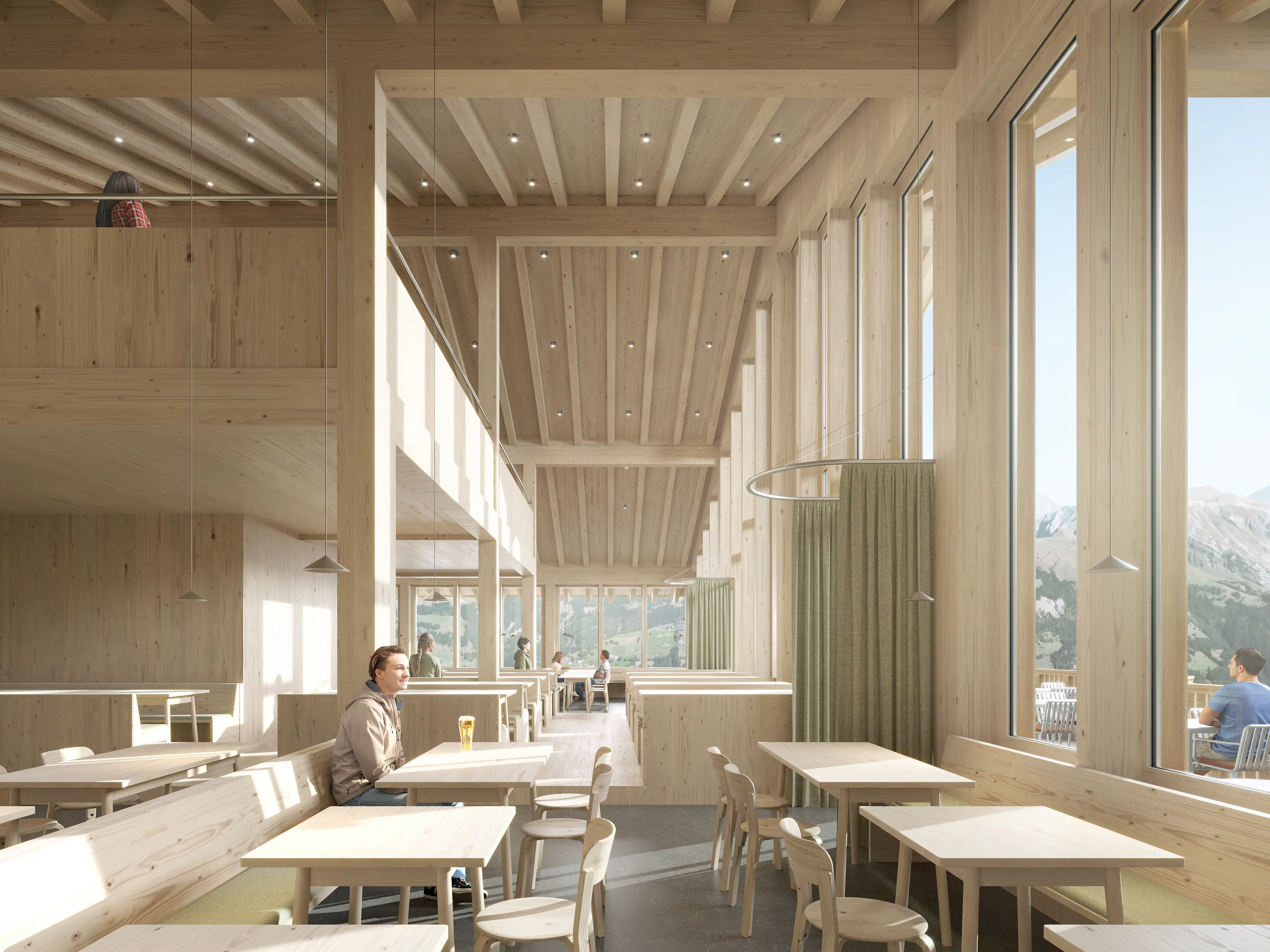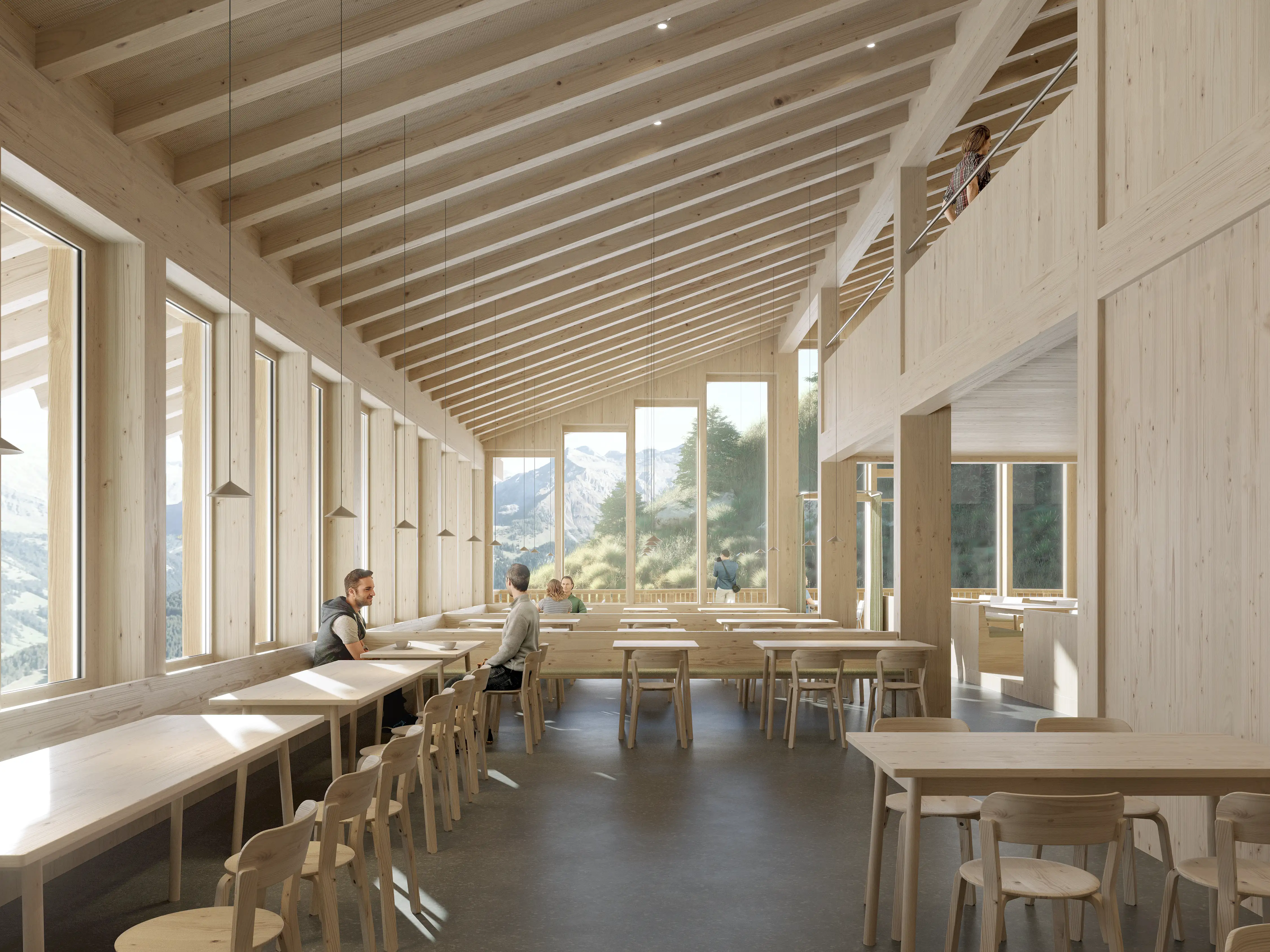 Mit dem Neubau erhält das Bergrestaurant Leiterli ein verändertes Betriebskonzept. Klassische Selbstbedienung und traditioneller Service werden durch flexible, digital unterstützte Gastronomieformate ergänzt.