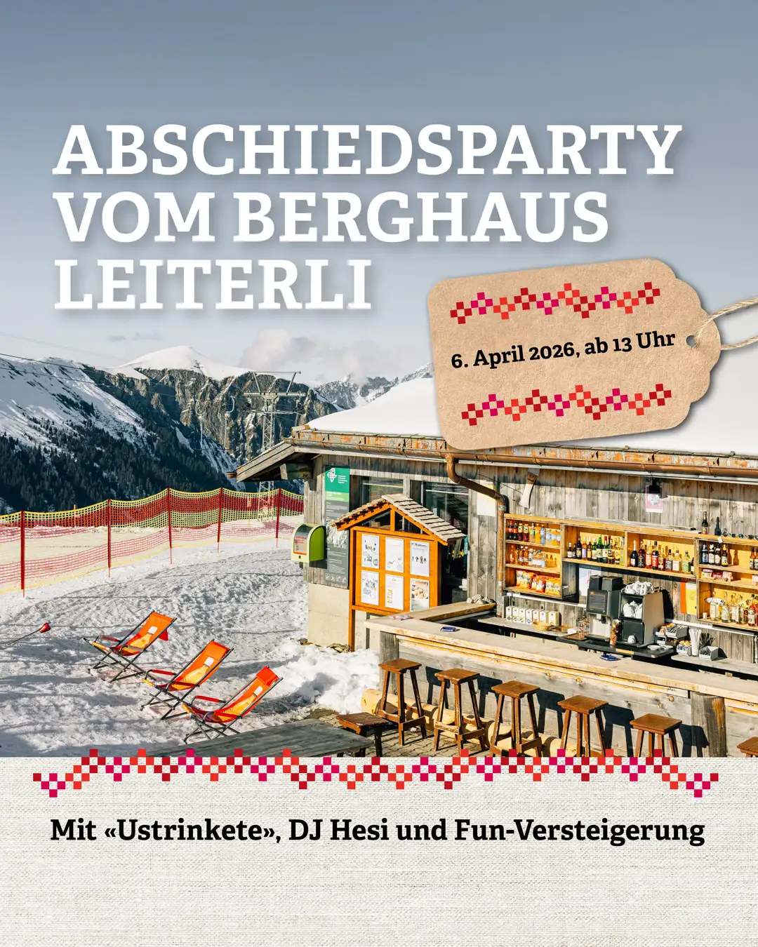 Im Sommer 2026 wird aus dem alten Berghaus Leiterli ein neues Bergrestaurant. Technisch innovativ, modern und lichtdurchflutet lädt es ab der Wintersaison 2026/2027 zu neuen Gipfelgenüssen ein. Schlemmen mit Bergpanorama ist natürlich auch während der Bauphase möglich: Der «Alpen-Imbiss Leiterli» sorgt im Sommer 2026 für kühle Erfrischung und süsse wie herzhafte Snacks gegen den grossen und kleinen Hunger.