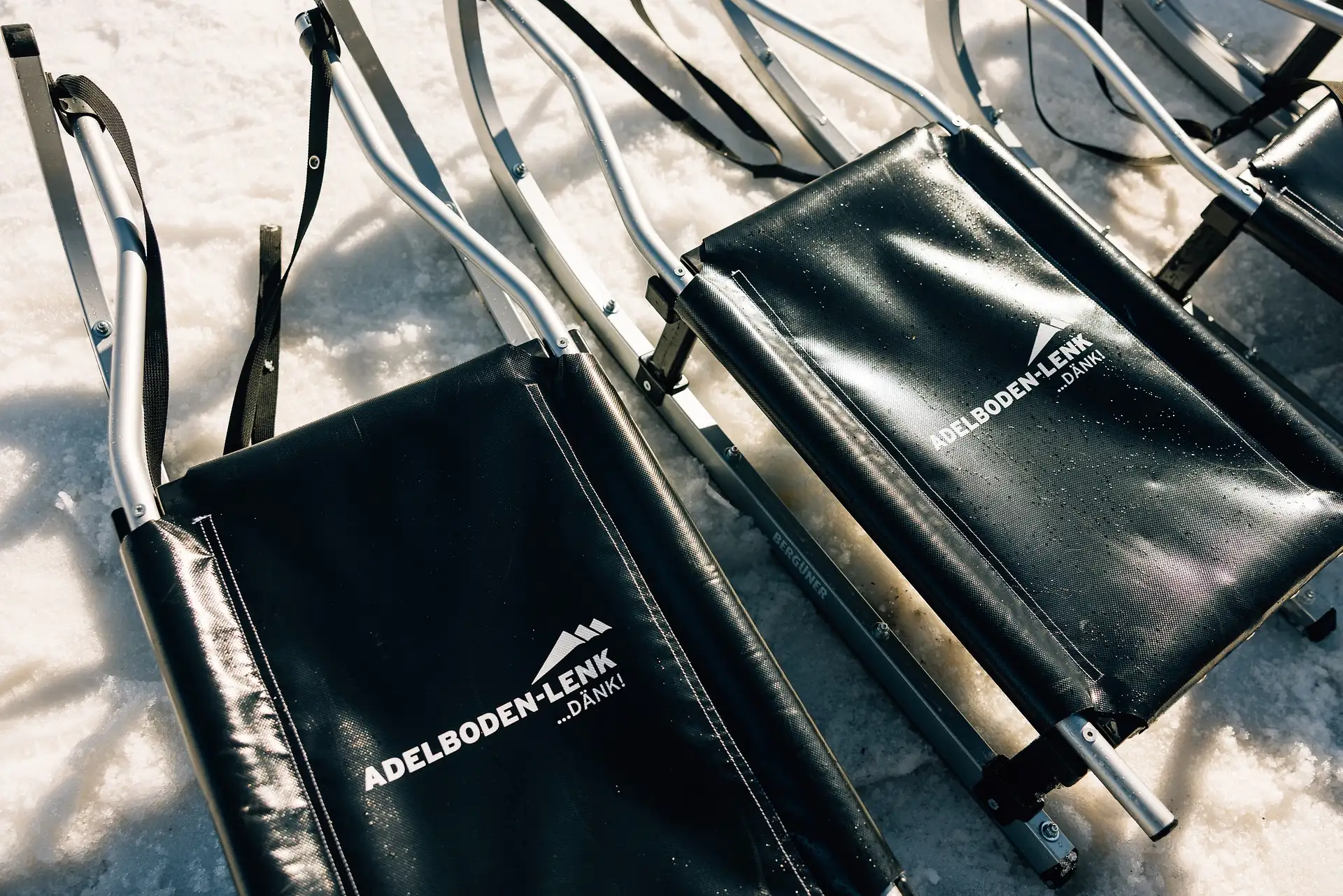 Rasant und familienfreundlich: Der Schlittelweg von der Bergstation Leiterli zur Mittelstation Stoss bietet pures Wintervergnügen mit traumhafter Aussicht auf den Wildstrubel. Die Strecke ist vom Winterwanderweg und der Skipiste getrennt und exklusiv fürs Schlitteln reserviert.